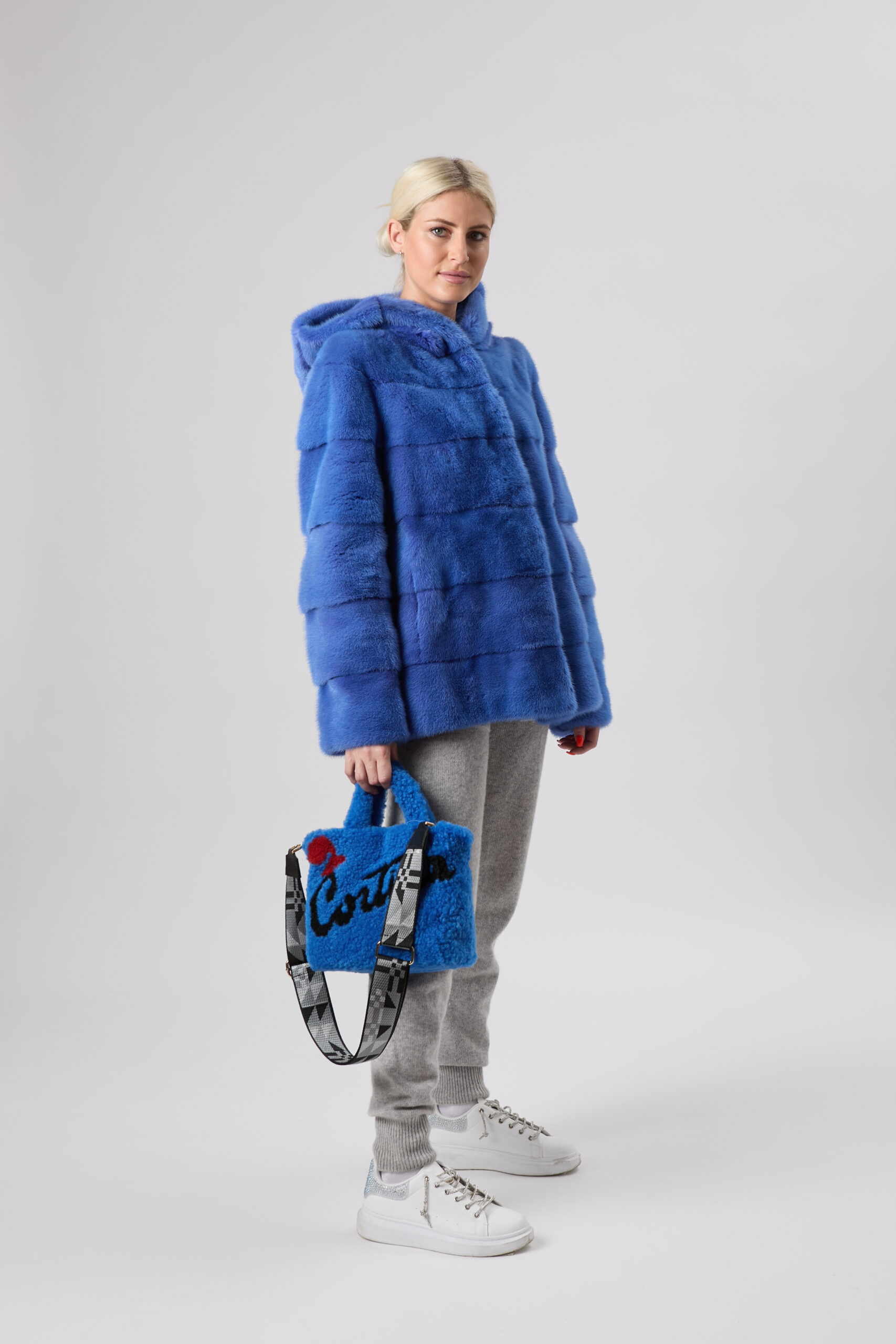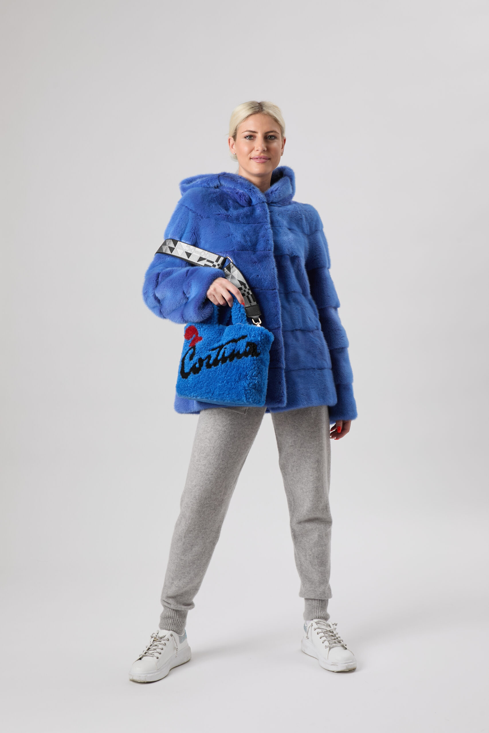 Borsa in shearling bouclè firmata Cortina azzurro cobalto