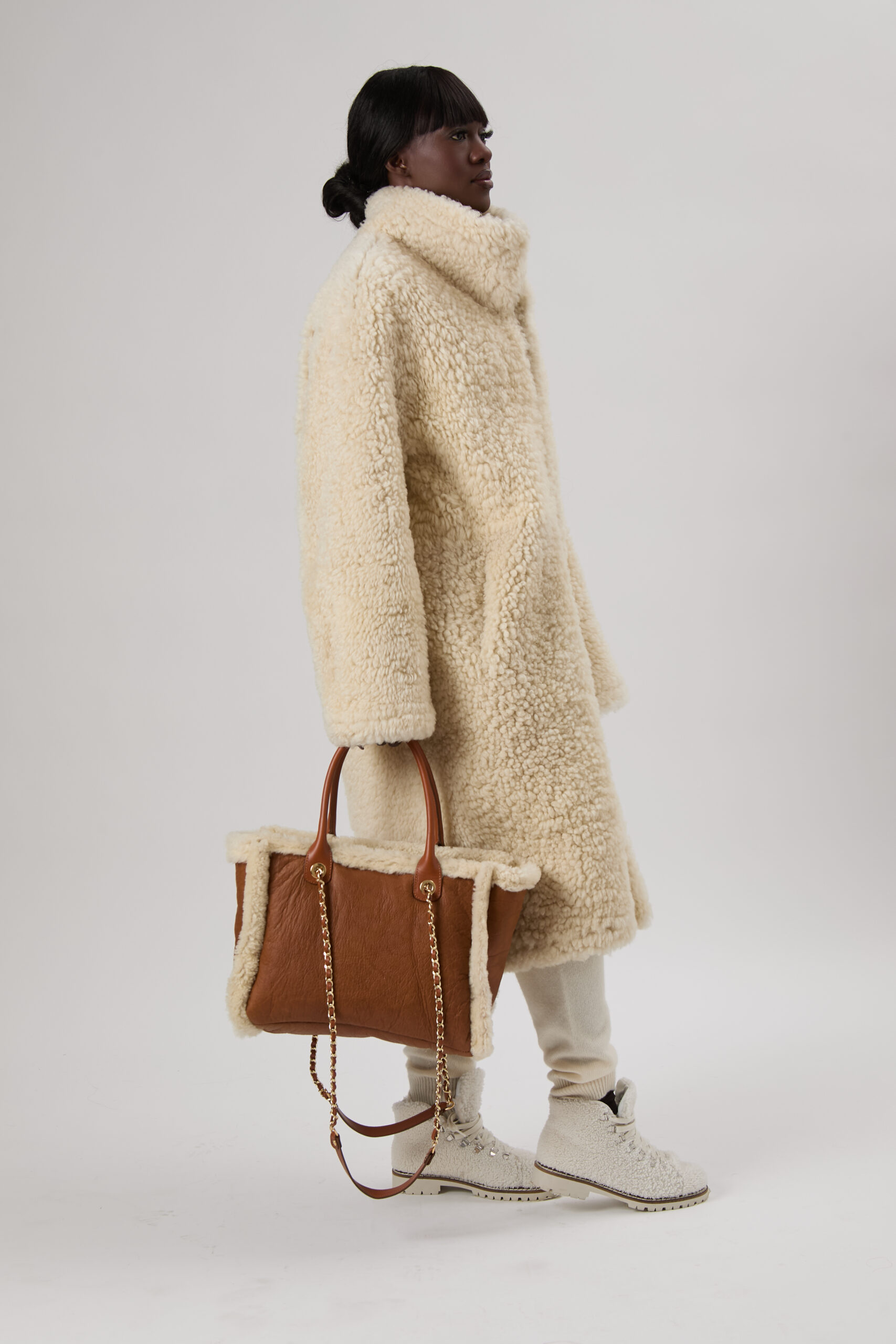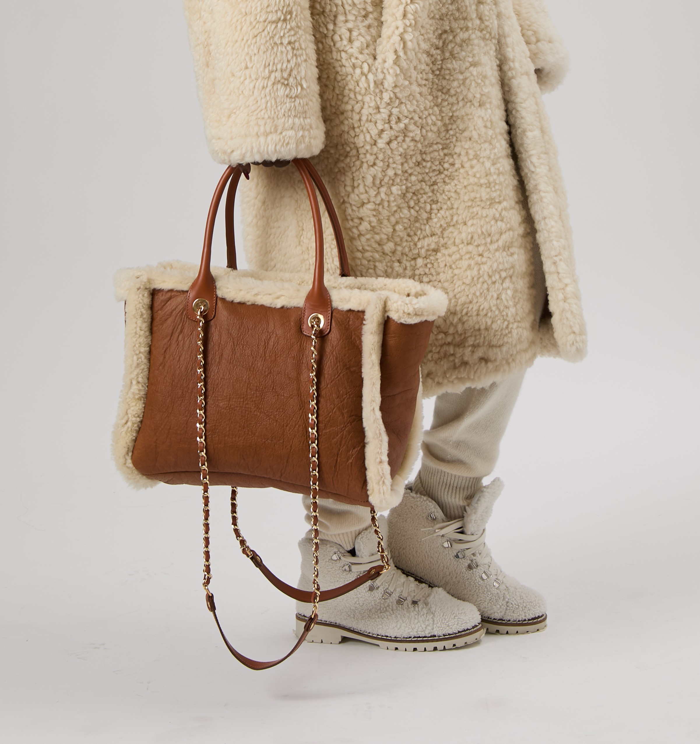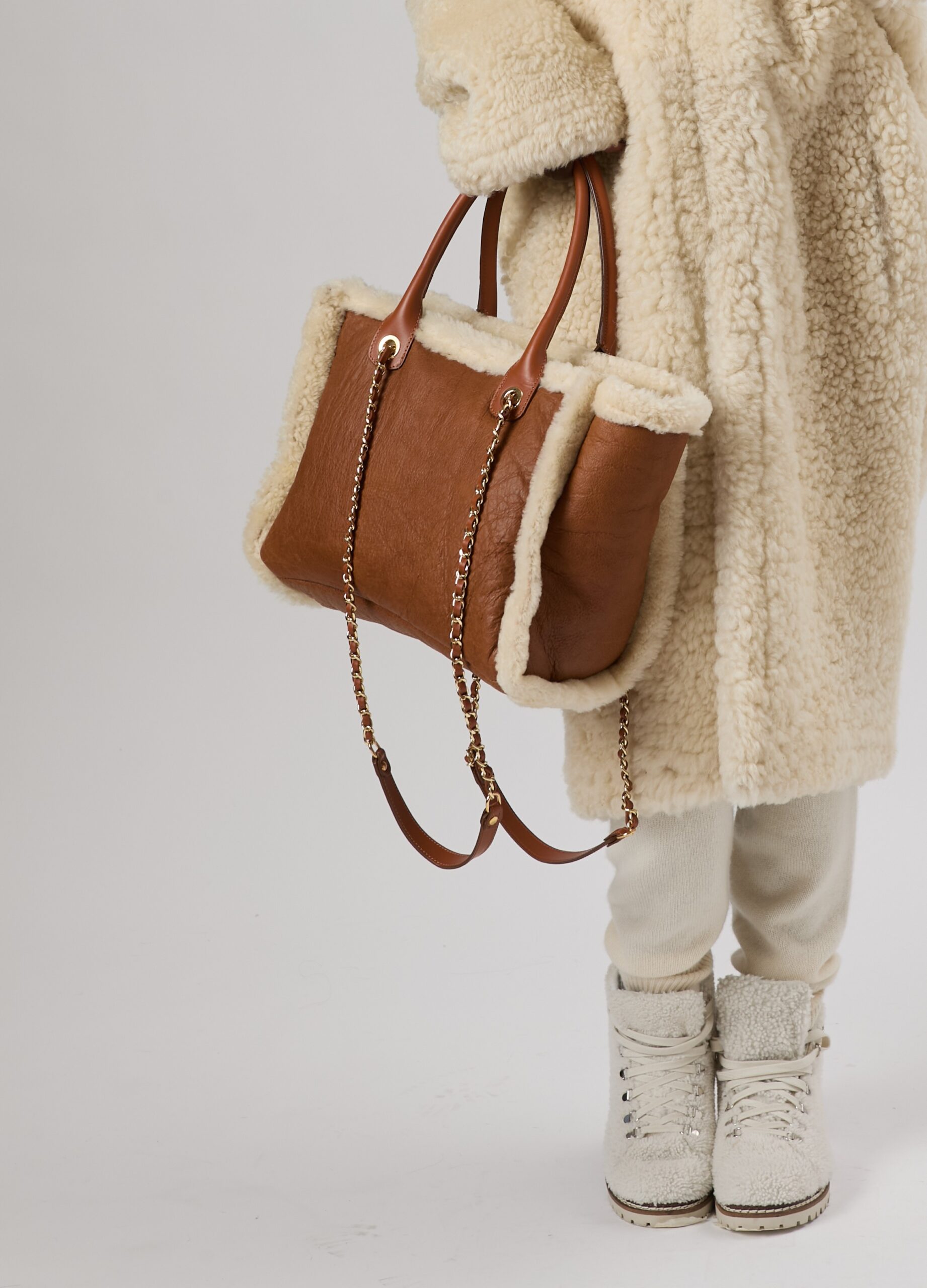25/26 Borsa maxi in shearling scamosciato canadese